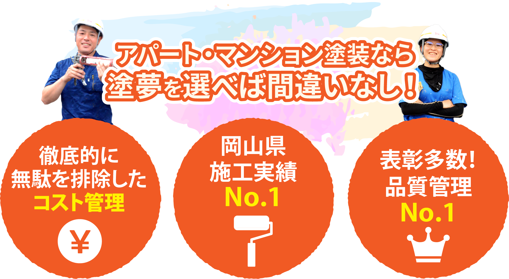 グループ会社の大型建築専門塗装会社・小山塗装で余った未開封塗料を活用するため、高品質なのに安価に施工可能!