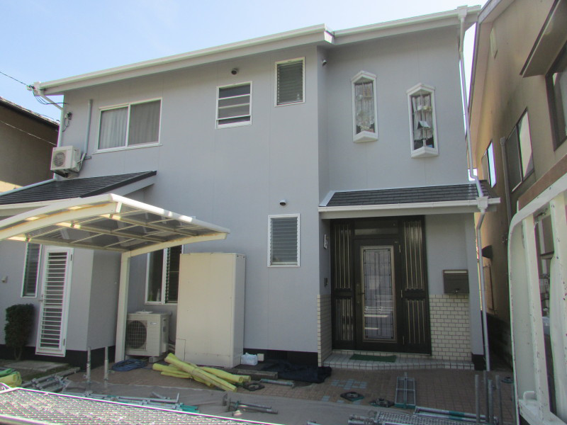 改修前の外壁色も同色のグレーでしたので、塗り替えた~って感じではないですがご主人も綺麗になったと喜んで頂きました。