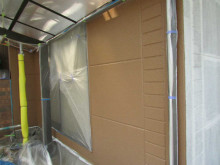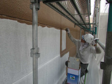 外壁の目地の割れ箇所が多かったので微弾性フィラーという材料を目地に一度塗り込みさらに外壁全体に塗りました。