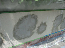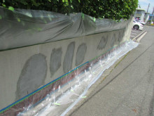塀は裏から水が廻り、かなり塗膜が浮いてました。浮いた部分は全て除去しカチオン系フィラーを塗り平滑面を作りました。