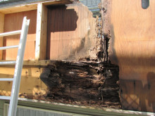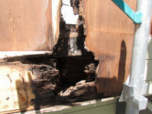 雨水が笠木から侵入して木材を腐食させてました。怖いですね・・・