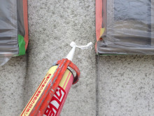 下地処理で最も重要なクラック(ヒビ割れ)へのシーリング材充填です。ここをちゃんとしておかないと直ぐに塗膜が破断してしまいます。