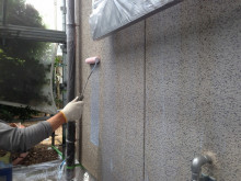 そして次の作業は下地に浸透し上塗りとの密着を良くするシーラーをたっぷり塗ります。この時ローラーを下地に強く押し付ける事でシーラーが下地により浸透します。