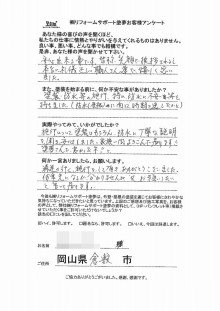 開封してみると塗夢アンケート。先日工事が完了した倉敷市福島M様からでした。