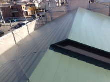 既存屋根はガルバニュウム鋼板でしたのでケレン・洗浄・エポキシ系プライマー塗布後フッ素樹脂塗装。