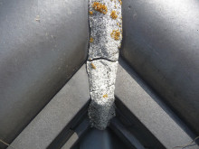 通常であれば仮設工事の後は高圧洗浄ですがM様邸は塗装工事の見積もり依頼で、いざ梯子を建て屋根の診断をしてみると棟瓦の漆喰がズレ落ちていました。