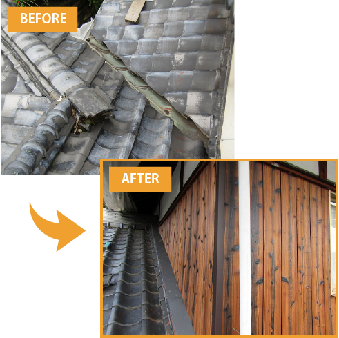 施工内容:屋根修繕(漆喰埋め戻し・流谷交換・瓦差し替え)・2階外壁貼り替え