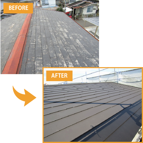 建材の保護や防水、美観を目的として、既存の屋根に塗料を塗る工法。