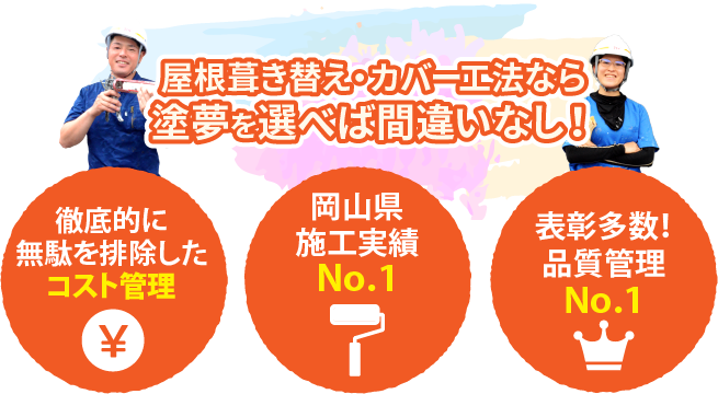 小山塗装グループは昭和59年に創業した老舗の屋根外壁塗装専門店。塗装技術と経験、真摯な対応で地域の皆様に選ばれ続け、施工実績岡山県No.1!