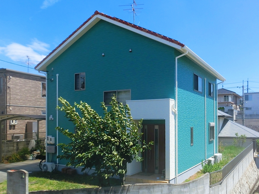 倉敷市 ターコイズグリーンの外壁塗装事例
