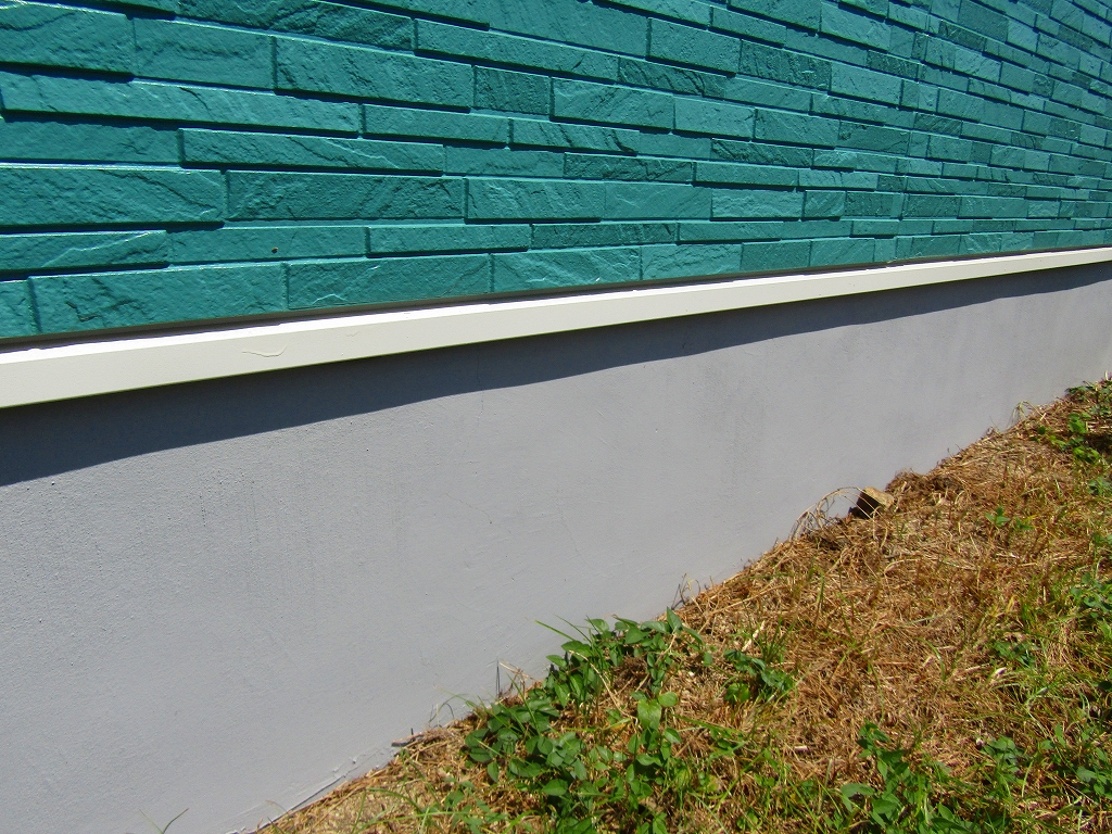 - 基礎の塗装です。基礎は撥水性の高いセラミガードを使い地面の泥ハネ汚れから守ります。